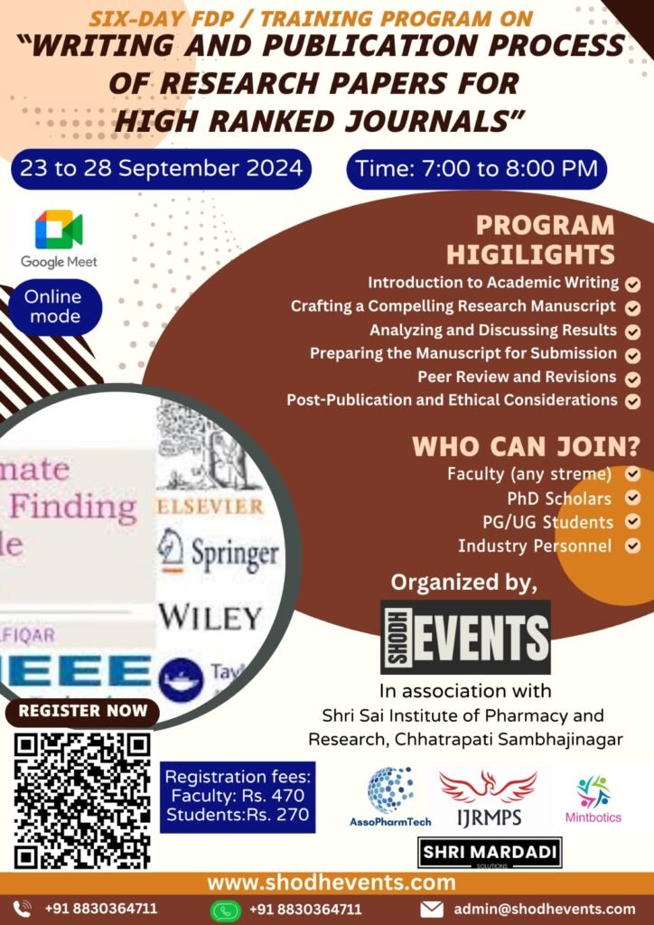Six days FDP/ Training Program on "Writing and Publication Process of Research Papers for High Ranked Journals" From 23 to 28 September 2024
